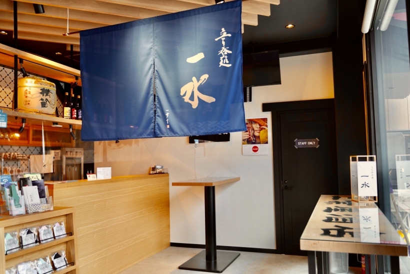 店舗リニューアルに伴い、以前では当たり前のように酒屋で立ち呑みをする手盃(かけつけ一杯のてっぱ)の光景がありましたが、酒文化の名残を再現したく店舗内に立ち呑みする、角打ち(四角い升の角に口を付けて飲むこと)コーナーを設けました。